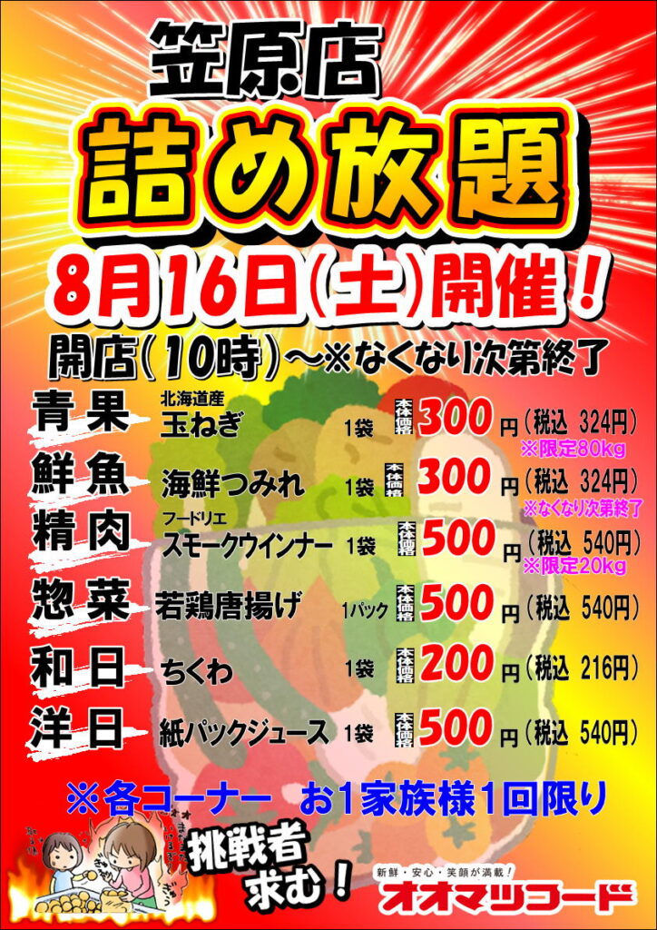 8月16日(土)は、笠原店限定!詰め放題を開催!!