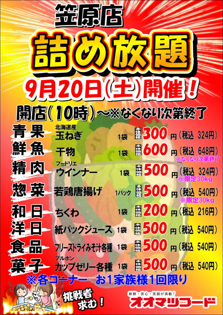 9月20日(土)開店~大好評の詰め放題を開催!!