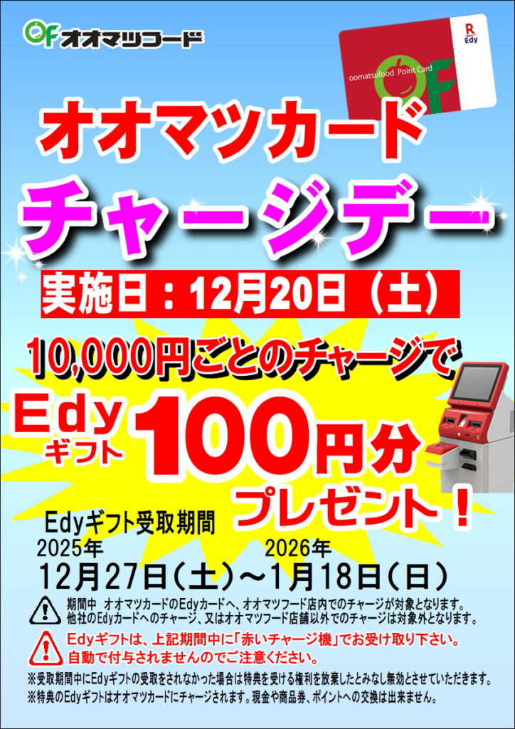 12月20日(土)はオオマツカードEdyチャージデー!!