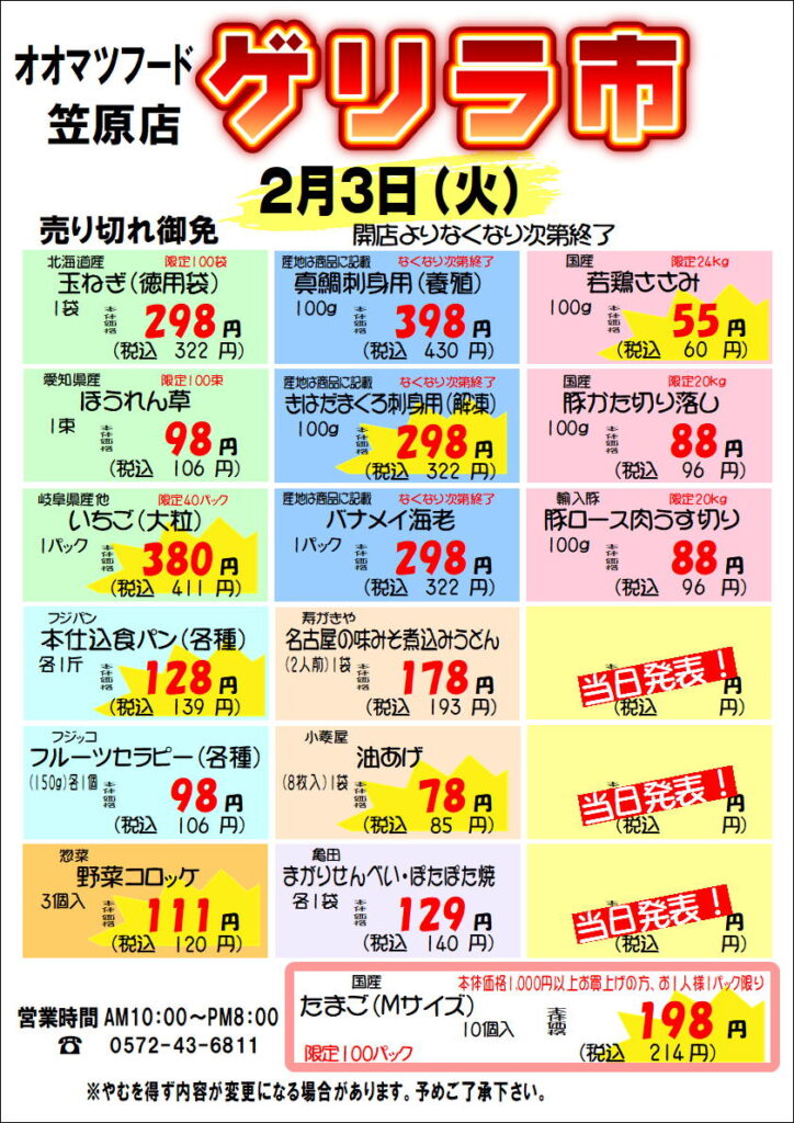 2月3日(火)は、笠原店月に一度のゲリラ市を開催!!